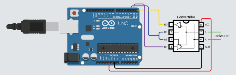 - Components: Arduino Uno, RS232 to RS485 module (required for the ionizers' protocol), 9-volt battery with an ON/OFF switch, and a fixed Ethernet connection to the ionizer.